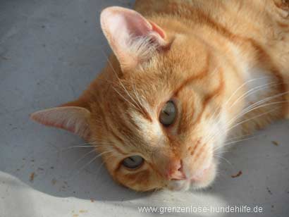 Der rote Kater ist sehr schlau, sobald sich die Tür zu seinem Zimmer öffnet, versucht er, ins Freie zu gelangen. Schon ein paar mal mußte ich ihn im Gang wieder einfangen, was der Kater sich aber auch lieb gefallen ließ.