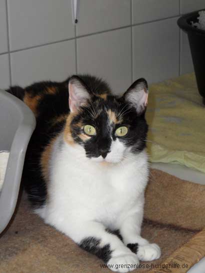 Wie es die Dreifarbigen so an sich haben hat sie auch ihren Charakter: Sie ist lieb und lässt sich streicheln, aber zeigt auch wenn sie genug hat.