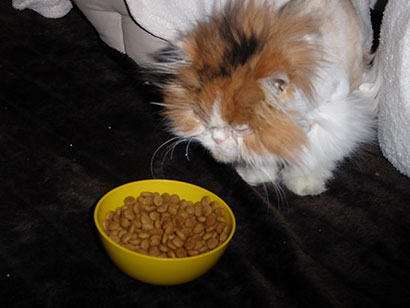 Trotzdem ich sie so intensiv füttere, tropfen und salben muß, hat sie mich weder gekratzt noch gebissen. |