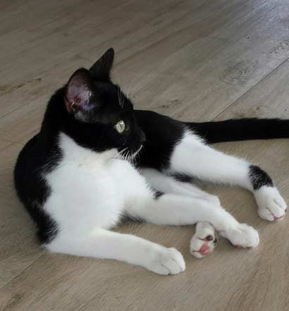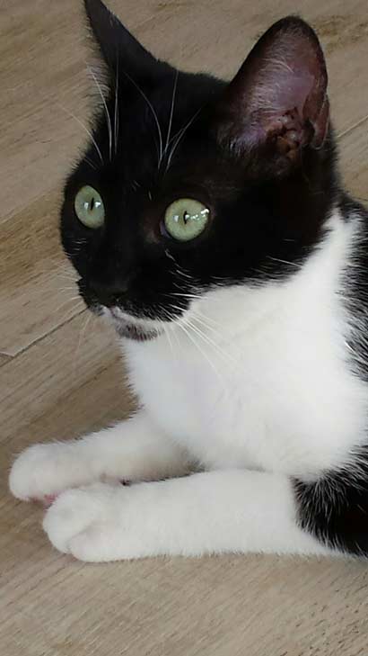 Sie spielt gerne mit unseren Hund und auch mit den anderen Katzen.