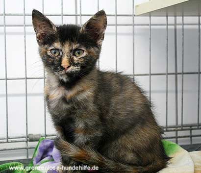 Zora hat leider das Pech als Schildpattkätzchen auf die Welt gekommen zu sein, so nennt man die spezielle Farbe dieser Katzen mit gemischten Farben.