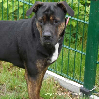 Kaya ist eine junge freundliche, unkomplizierte Rottweiler-Schäfer Mix Hündin.