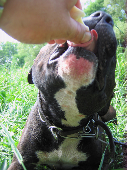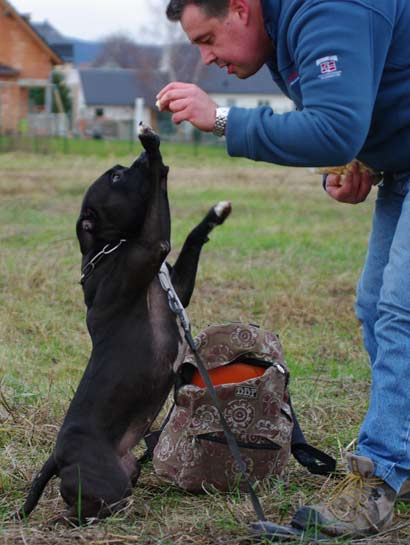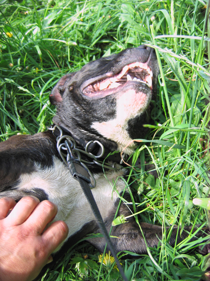 von ihrem Gassigeher Jean Philippe - hier sieht man, dass Kayla "cherche" beherrscht, "apporte" ebenfalls und natürlich "assis" sowie "couche". Verschmust ist sie auch noch....