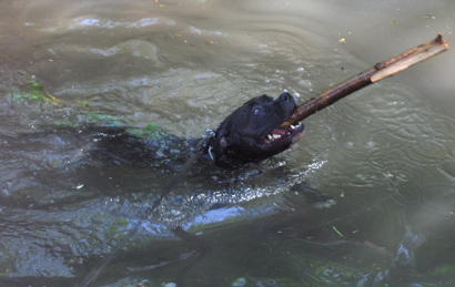 Im zweiten Video sieht man eine wasserverrückte Kayla - sie schwimmt wie ein Fischotter und bringt Stöckchen zurück
