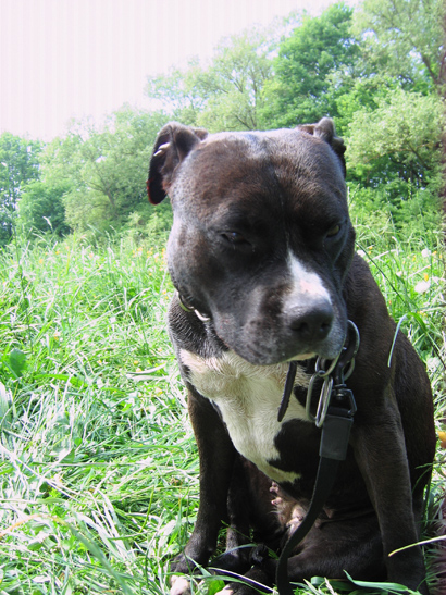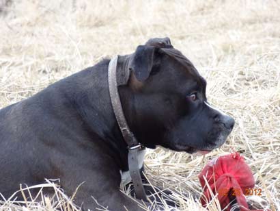 Kayla, geboren in 03/2007, eine weibliche AmStaff Hündin, daher nur zur Vermittlung in die Schweiz.