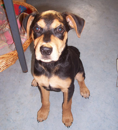 Ein ca. drei Monate alter männlicher Welpe, er wurde "gefunden", so sagten die Leute als sie ihn abgaben mit ganz viel Gepäck...