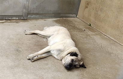 Kezo wurde von einem Mitarbeiter des Tierheimes aus ihrem erbärmlichen Zustand befreit.