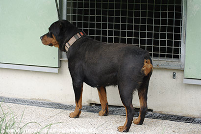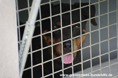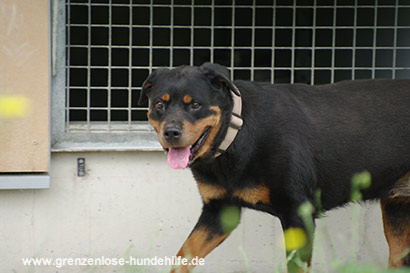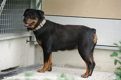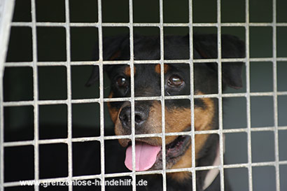 Die kleine Rottweiler Hündin wurde beschlagnahmt und kam dadurch zu Ihrem großen Glück ins Tierheim.