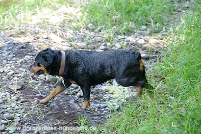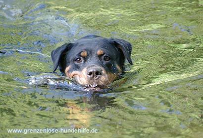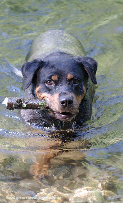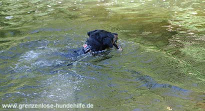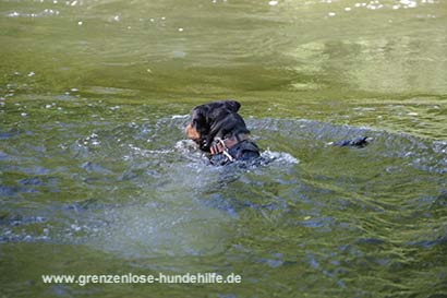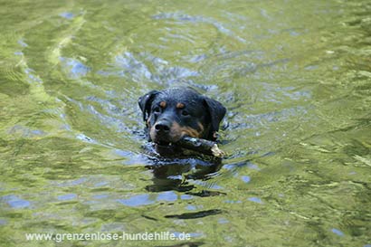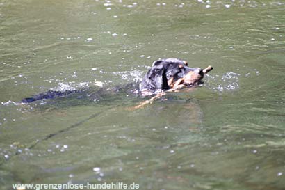 Am dem Fluss angekommen war sie sofort im Wasser und schwamm. Stöckchen holte Sie mit Begeisterung und leuchtenden Augen und brachte diese auch gerne wieder zurück. Nur leider war irgendwann die Zeit um und es tat uns in der Seele weh, diese fitte, bezaubernde Maus, die gerade das Leben für sich entdeckt, wieder in den Zwinger zurückbringen zu müssen :((