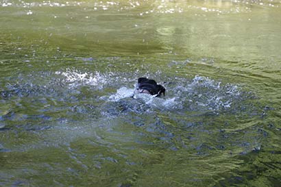 Da es sehr heiss war und wir Zeit hatten, beschlossen wir an einen Fluss zu gehen und Ihr die Möglichkeit zu geben, sich im Wasser abzukühlen. Unterwegs sind wir an einigen Störchen vorbeigekommen, die Sie interessiert beobachtete, doch keinerlei Anstalten machte, diese zu jagen.