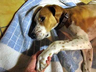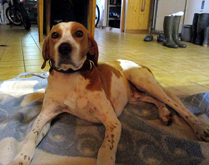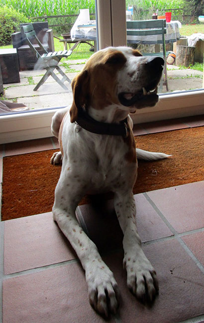 Leider hatte er keinen Chip und somit war meine Suche nach seinem Besitzer sehr schwer. Zuerst wollte ich ihn in einem der SPA in der Nähe abgeben. Doch als ich hörte, dass Jagdhunde da mehrere Jahre auf ein Zuhause warten oder sogar nie mehr da weg kommen wollte ich ihm das nicht antun.
