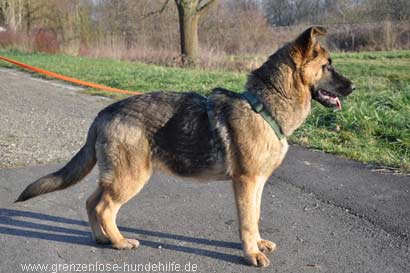 Kimbo der junge Schäferhundrüde wurde von seinem Besitzer, zusammen mit der Hündin Laika, ans Tierheim abgegeben.