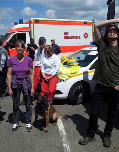 Heute waren wir auf dem Feuerwehrfest, wo noch viel mehr los war. Auch dort lief er problemlos durch. Laute Geräusche und Knalls nimmt er gelassen hin. Er ist zwar etwas angespannt, weil er das alles nicht kennt, aber er macht das ganz grossartig.