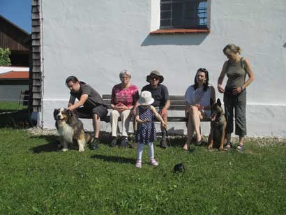 Mit genug Auslauf hielt er es auch mal für 3 Stunden aus, wenn wir ihn nicht mitnehmen konnten. Er ging überall problemlos mit, schloß mit den Bauernhofhunden Freundschaft, natürlich immer mit einem "schelmischen" Grinsen im Gesicht, ob man die nicht doch etwas foppen könnte ;)
