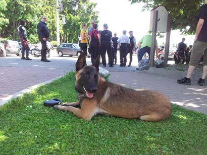 Er wurde bis jetzt im Schutzdienst nicht gearbeitet. Aufgrund der momentanen Schleimbeutelentzündung sollte er noch etwas geschont werden.