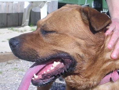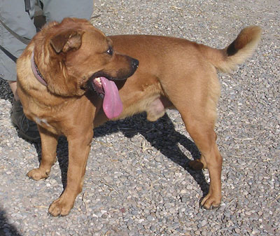 | Kuma ist ein Sharpei-Rottweiler-Mischling,
