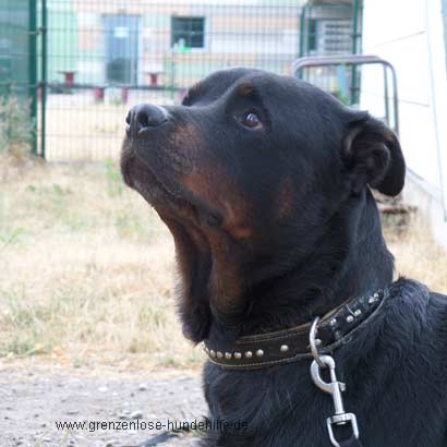 Die sehr liebe siebenjährige Rottweiler Hündin Kyra wurde wegen Geldmangel im Tierheim abgegeben.