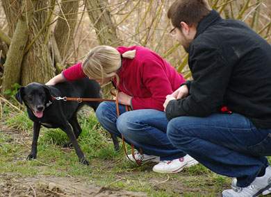 Als wir Lucy am 14. März 2009 in Colmar abholten, wollte sie von Menschen nicht viel wissen. Es war ihr deutlich anzumerken, dass sie mit diesen keine oder nur wenig gute Erfahrungen gemacht hat. Wir wurden aber bereits im Vorfeld auf diese Tatsache aufmerksam gemacht und für uns stand fest, dass wir sie in jedem Fall mit nach Hause nehmen werden. Dort zeigte sich schnell, dass Lucy scheinbar einfache Dinge wie Brustgeschirr anziehen, Flohmittel auftragen, praktisch alles, was „an“ ihr geschieht, Angst macht. Dafür war sie von Anfang an stubenrein, hat kaum gebellt und brav durchgeschlafen. Auch wenn es nicht immer einfach war, haben wir unsere Entscheidung niemals bereut.
