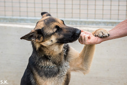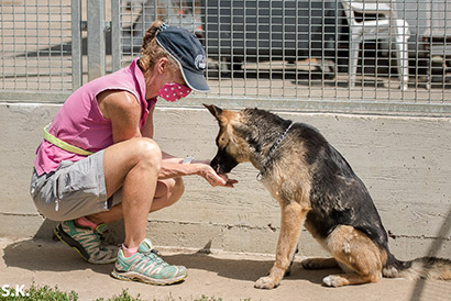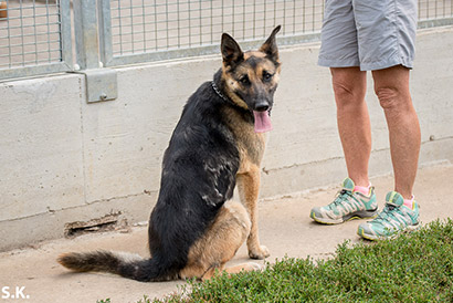 Lady hat auch nicht viel gelernt. Bei Besuchern präsentiert sich Lady leider nicht immer von ihrer besten Seite, rennt im Zwinger oder Freilauf rum und bellt dann auch schon mal.