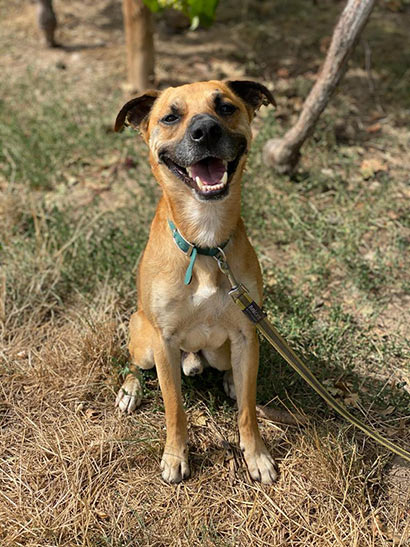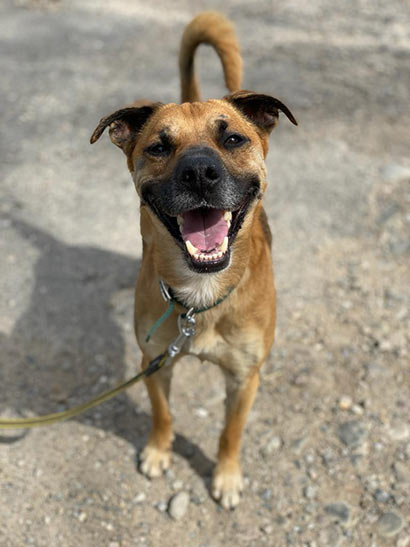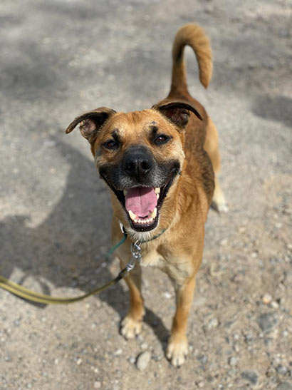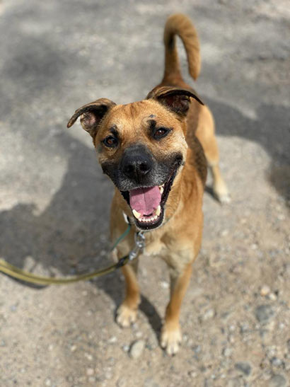 Im Tierheim zeigt er sich sehr gestresst mit anderen Hunden und zieht an der Leine.