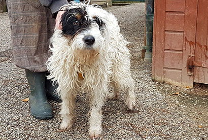 Der freundliche Foxterrier Rüde Laskar wurde durch einen Autounfall verletzt.