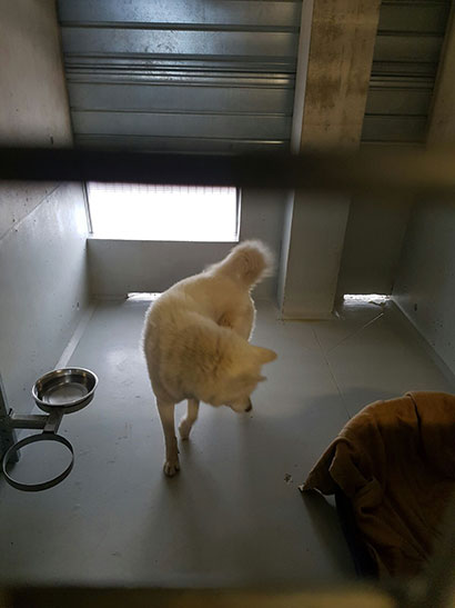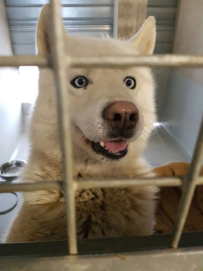 Lasko ist ein Mix aus Samojede und Husky und wurde wegen Scheidung abgegeben.