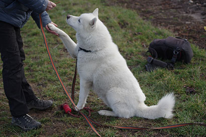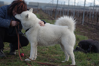 Lasko ist menschenbezogen und kennt ein paar der Grundkommandos, hörte auf uns obwohl wir Fremde für ihn waren.