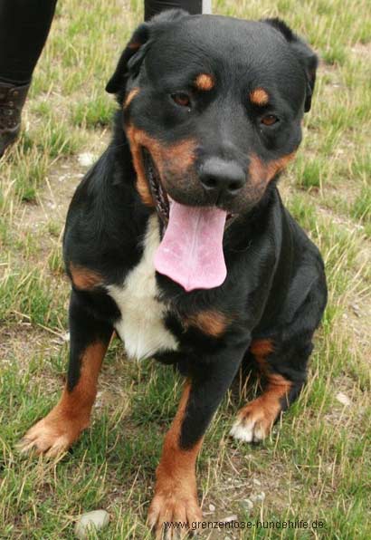 Lebo ist ein wunderschöner Rottweiler (Mix?) Rüde von drei Jahren.
