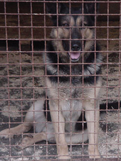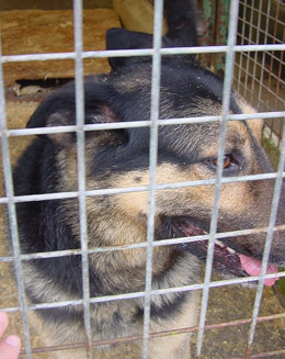 normaler lieber Hund ist, der gern aus dem Zwinger