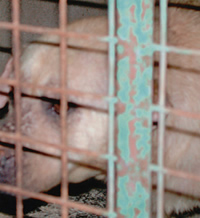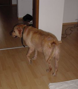 blutig gekratzt und fast ohne Fell. Er wurde im
