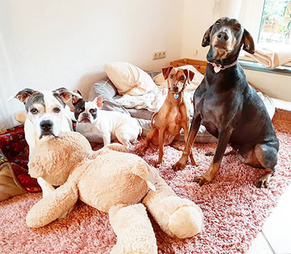 Sie leben dort auch problemlos mit zwei weiteren Hunden zusammen und gehen regelmäßig zum Hundetraining.