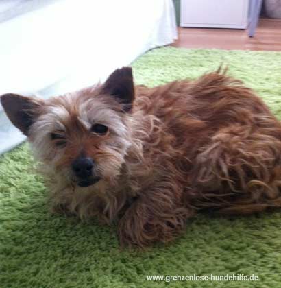 Die bezaubernde Leonie wurde wohl ausgesetzt und da sie ziemlich verwahrlost und abgemagert war, durfte sie auf eine Pflegestelle ziehen. Dort wurde sie aufgepäppelt, bekam einen ordentlichen Haarschnitt verpasst und hat sich nach und nach ins Leben zurückgekämpft. Auf der Pflegestelle lebt sie mit anderen Hunden und Katzen zusammen und lt. ihrem Frauchen ist Leonie eine ganz liebe Hündin, alters-entsprechend schläft sie immer wieder mal zwischendurch, kann alleine bleiben und genießt inzwischen auch kurze Streicheleinheiten. Beim Gassi gehen lautet ihre Devise: "nein, ich gebe nicht auf" und so schafft sie mehrere kleine Runden am Tag und liebt es an warmen Tagen im Garten zu liegen. Leonie besticht durch ihre tolle Persönlichkeit und wir wünschen uns für sie ein schönes, gemütliches Zuhause, wo sie die letzten Jahre ihres Lebens noch glückliche, ruhige Zeiten hat.