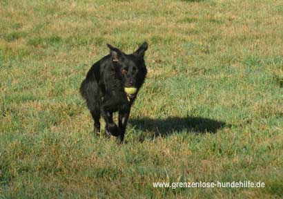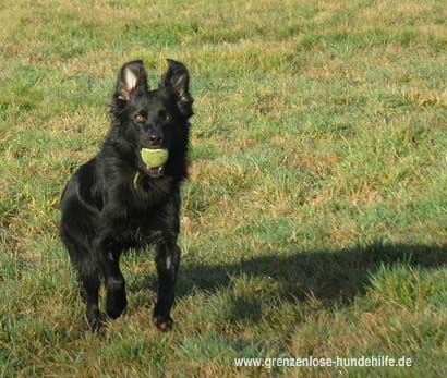 Heute bin ich mit dem schönen Levis Gassi gegangen. Wir waren noch nicht lange unterwegs, schon war ich von dem jungen Rüde total begeistert. Levis ist ein lieber, lebensfroher Kerl. Je mehr ich mich mit ihm beschäftigte, desto anhänglicher wurde er. Wir haben Stöckchen und Ball gespielt. Er ist ein schlauer Junge und hatte bald die Spielregeln begriffen. Stöckchen holen, vor die Füsse legen, sitzt machen, Leckerli nehmen und wieder Stöckchen holen. So ging es eine ganze Weile weiter. Es machte Levis unendlichen Spass, es war ja so toll durch die Wiese zu rennen.