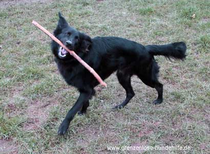 Levis ist ein freundlicher Mix Rüde mit halblangem Fell. Der schöne Schwarze wurde gefunden und man gab Ihm den Namen Levis.
