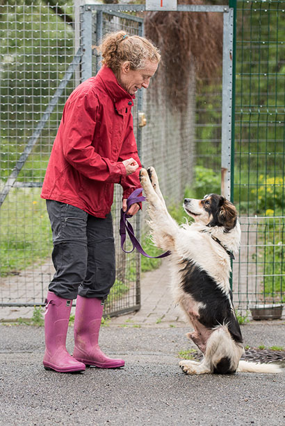 Heute morgen war ich das erste Mal mit ihm spazieren, er hat sich vor Freude fast überschlagen. Für sein Alter ist er noch fit und ist ein super Begleiter. Wir haben mehrere Hunde getroffen und auf jeden ging er freundlich zu. Er schnüffelt gerne herum und liebt Streicheleinheiten.
