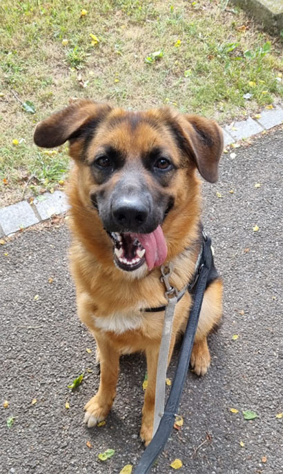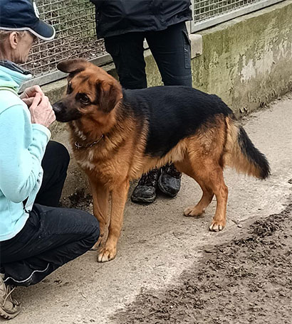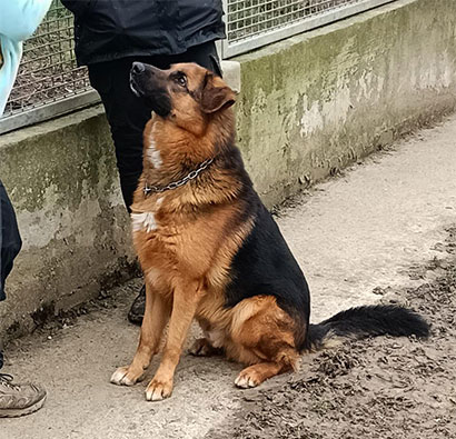 Der hübsche Rüde braucht Zeit, um Vertrauen zu fassen. Bei Fremden ist er unsicher und kann negativ reagieren, wenn jemand seine Individualdistanz unterschreitet.