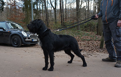 An der Leine läuft er, hat er erstmal die aufgestaute Power herausgelassen, ganz ordentlich.