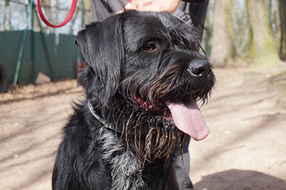 LOISS ein stattlicher Riesenschnauzer Mix ? Rüde ist am 01.04.15 geboren und wurde wegen Überforderung abgegeben.
