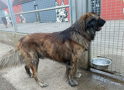 Der sehr liebe, 5 Jahre alte Leonberger Mix wiegt nur 24 kg und wurde wegen schlechter Haltung beschlagnahmt.