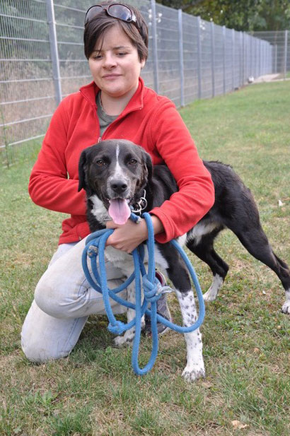 Loukoum ist ein ein ca. einjähriger Rüde, der freundlich und offen auf Menschen zugeht und sich erst einmal einige Streicheleinheiten holt.