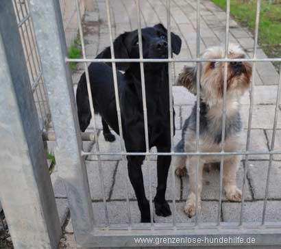 Louni ist ein freundlicher kleiner Rüde. Wenn er zusammen mit Goupil im Freilauf rennen und spielen kann, vergisst er scheinbar für kurze Zeit sein trauriges Schicksal.