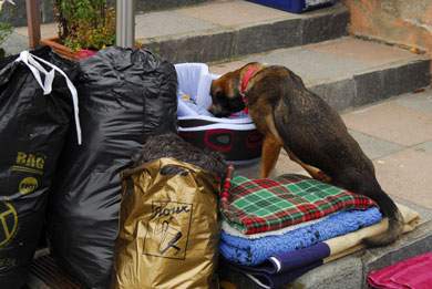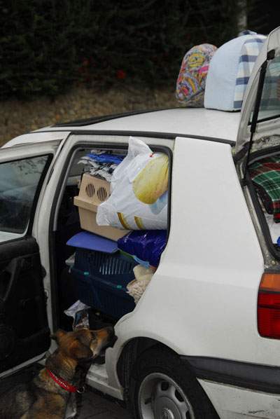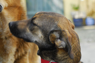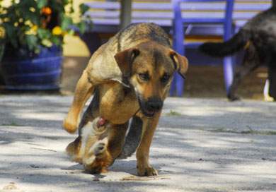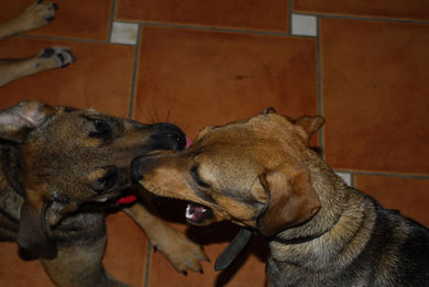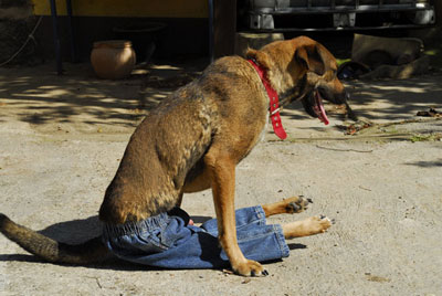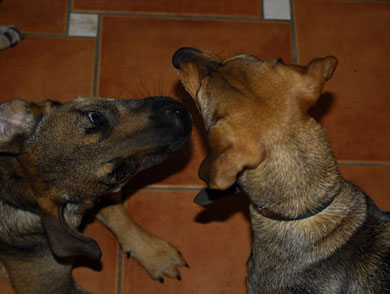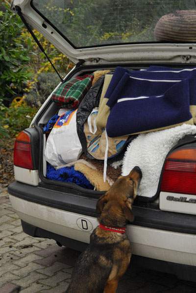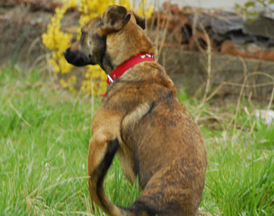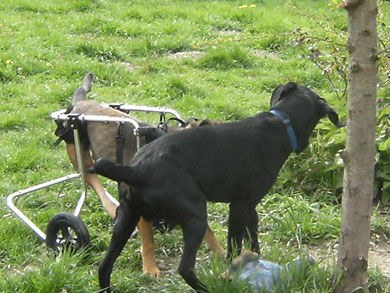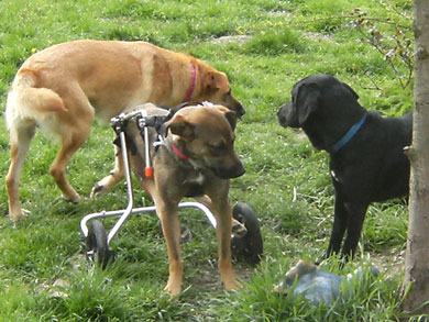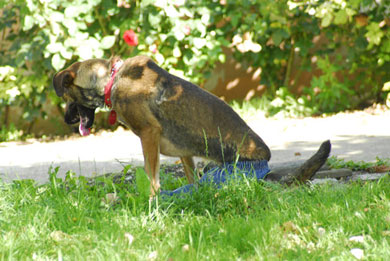 etwas vor uns her, da Lucky auf den Hinterbacken