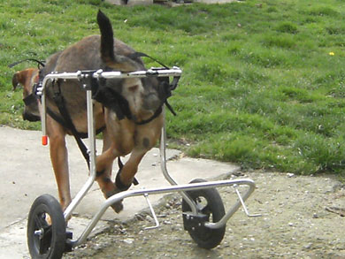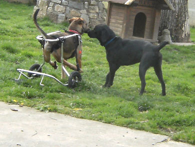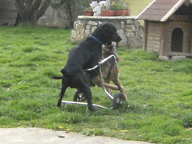 ihm hinten kleine Stützen montiert, damit Lucky vorne