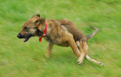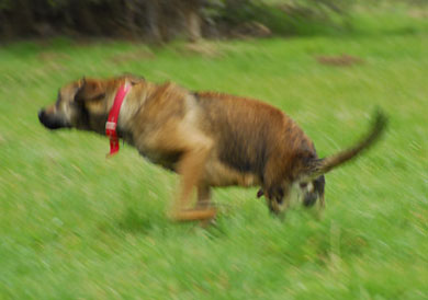 Lucky liebt es, auf der Wiese rumzutoben (egal ob es regnet