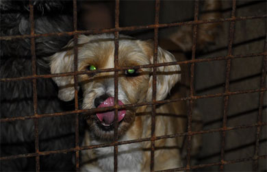 kleiner Herbstmond) fauvefarbene Tibetterrierhündin,