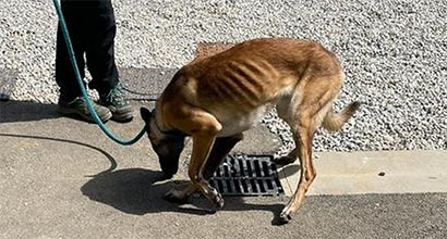 Mafia ist total abgemagert, es bricht einem das Herz sie so zu sehen. Als ich Mafia am Zaun gesehen habe, hat sie erst leicht geknurrt.