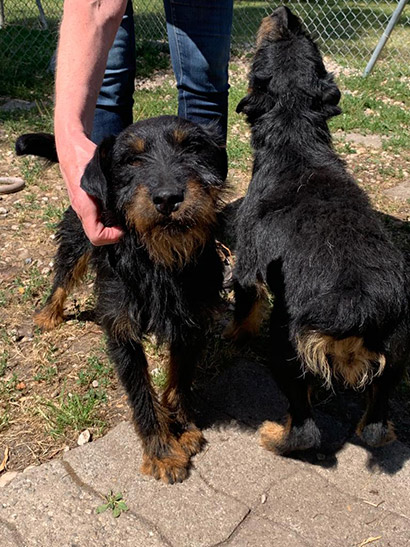 Die beiden unkastrierten Rüden vertragen sich sehr gut, dies sieht man jetzt, in der neuen Umgebung, denn trotz des enormen Tierheimstresses bleiben sie sich immer freundlich gesinnt.