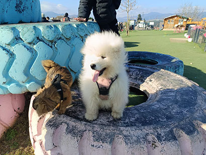 Mallow und seine Schwester Rainy besuchen öfters ein Spiel- und Lerngelände für Hunde. Hier lernen sie gemeinsam mit anderen Hunden auf spielerische Art verschiedene Dinge kennen und haben jede Menge Spass dabei.