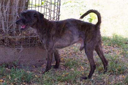 Manchmal springt er auf die 60 cm-hohe Mauer, die ihn vom Zwinger nebenan trennt hoch, um zu gucken, wer da wieder so ein Radau macht!