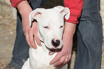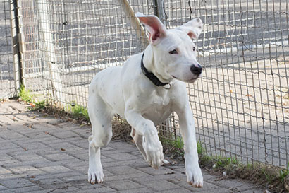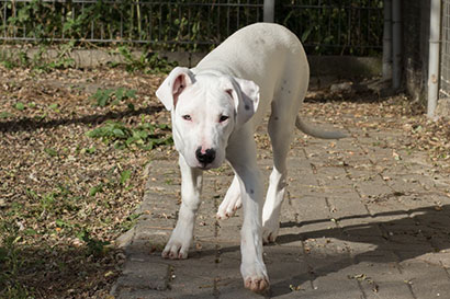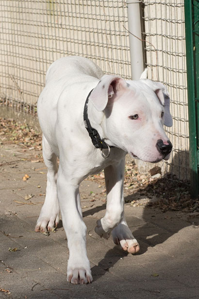 Mit sehr schwerem Herzen mußte der Besitzer die junge Hündin ins Tierheim bringen, da er keine Wohnung mehr besitzt.